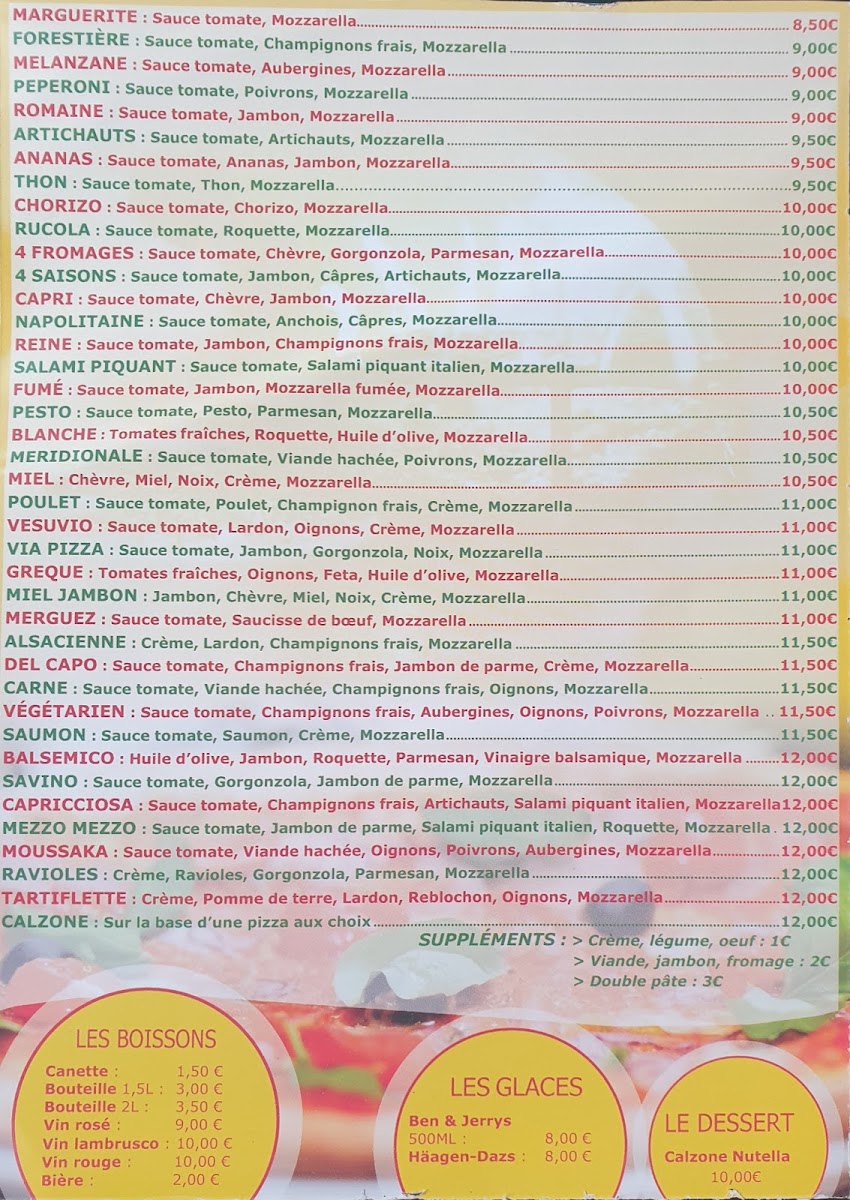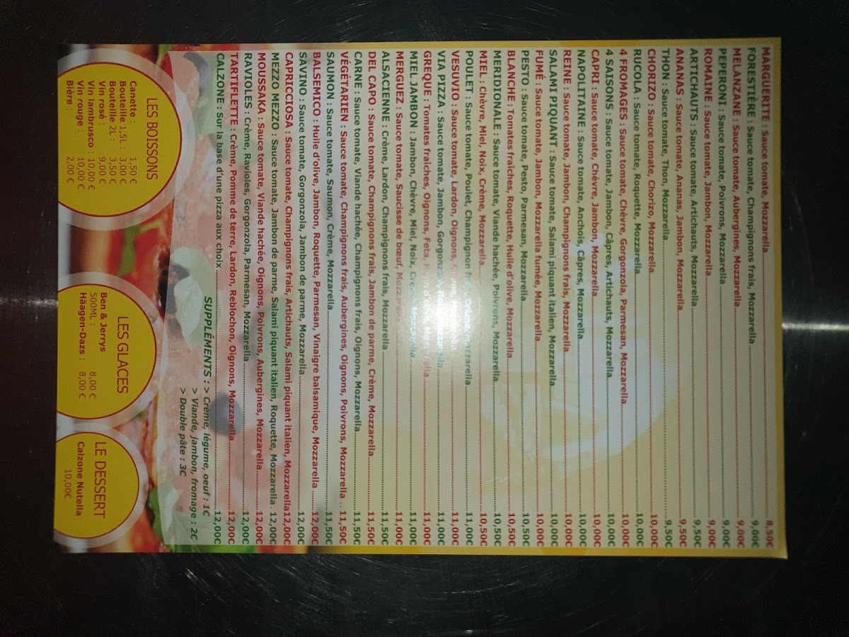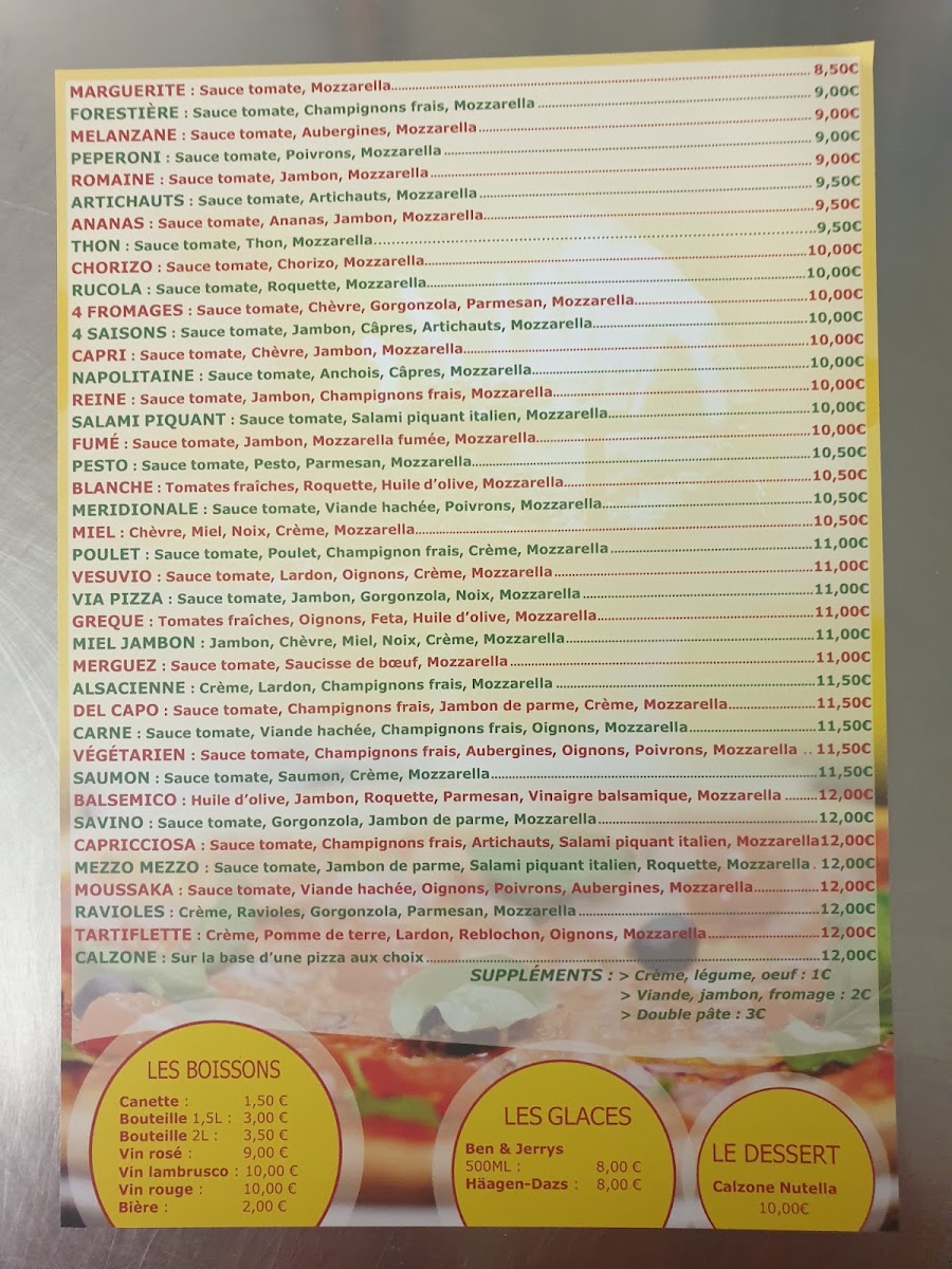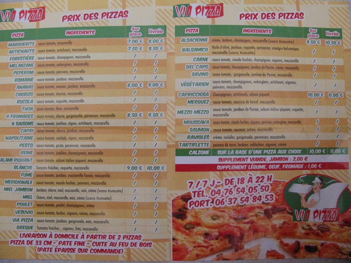 Via Pizza - A Emporter at 127 Grande Rue in La Tronche offers a menu that balances classic Italian flavors with approachable pricing, making it a standout for takeaway enthusiasts. The Pizza Reine impresses with its perfectly balanced combination of ham, mushrooms, and cheese, delivering a rich yet comforting taste. For those who enjoy a spicier kick, the Pizza Salami Piquant provides a satisfying heat from its spiced salami, complemented by a generous layer of melted mozzarella. The menu also features the stuffed Calzone, a hearty option packed with cheese and savory fillings, ideal for a more indulgent experience. Each dish demonstrates careful attention to ingredient quality and preparation, ensuring that even takeaway maintains a fresh, authentic flavor. Overall, Via Pizza - A Emporter’s offerings are straightforward yet flavorful, with standout pizzas and calzones that highlight the restaurant’s commitment to satisfying traditional Italian cravings in a casual, convenient format.
