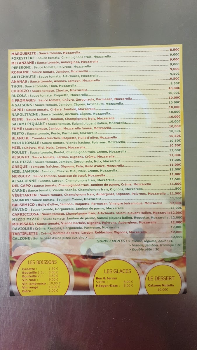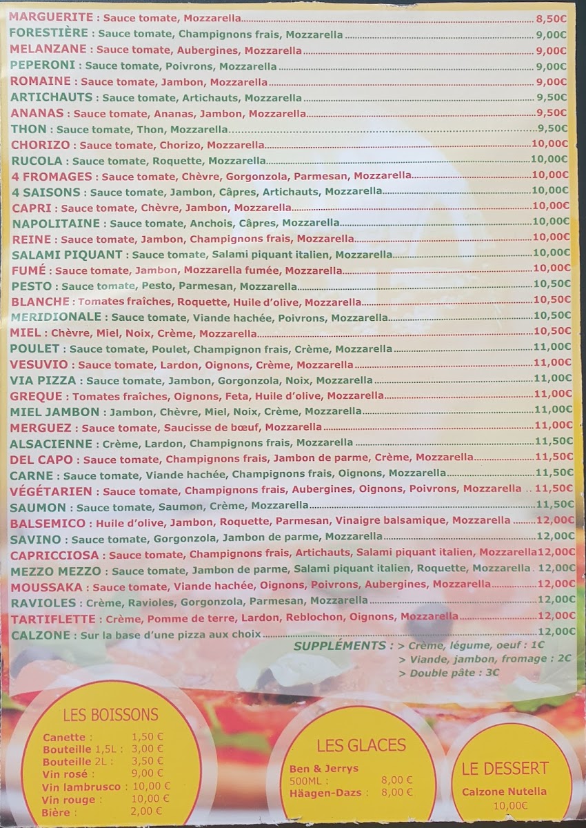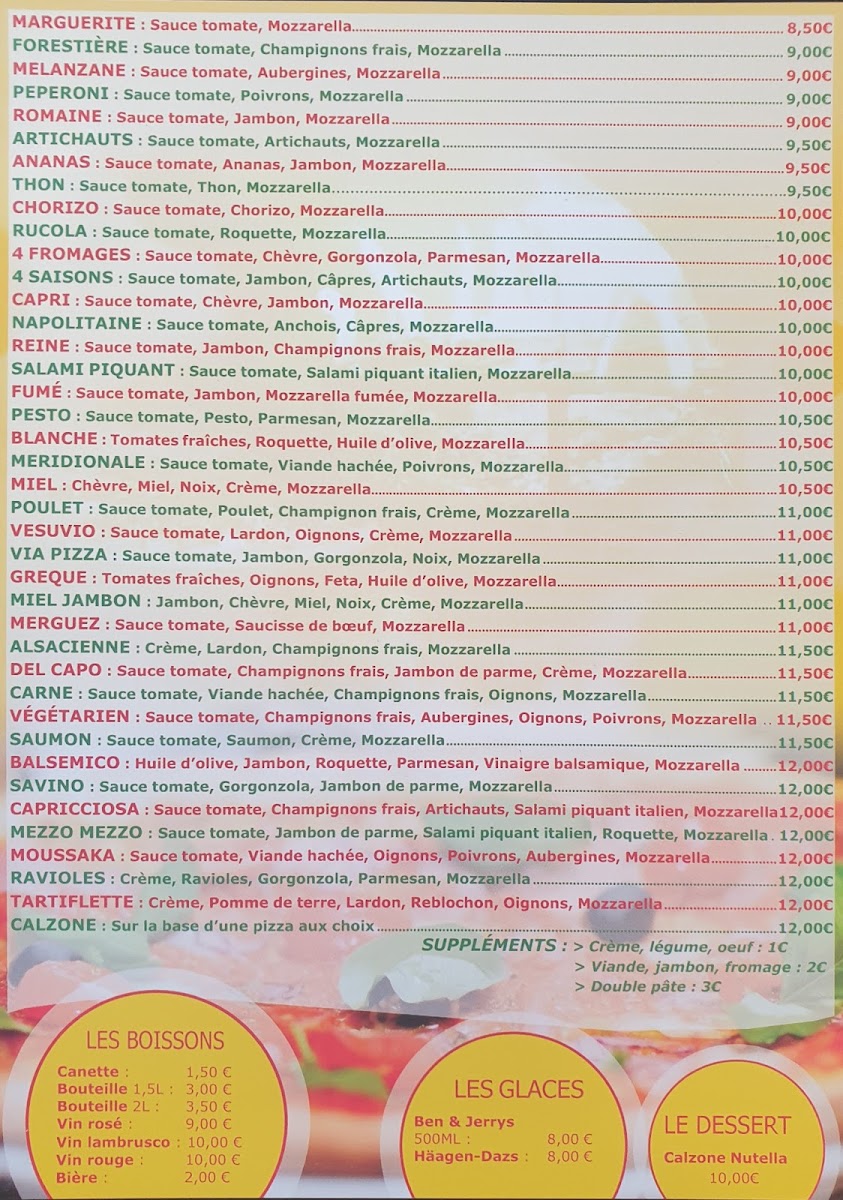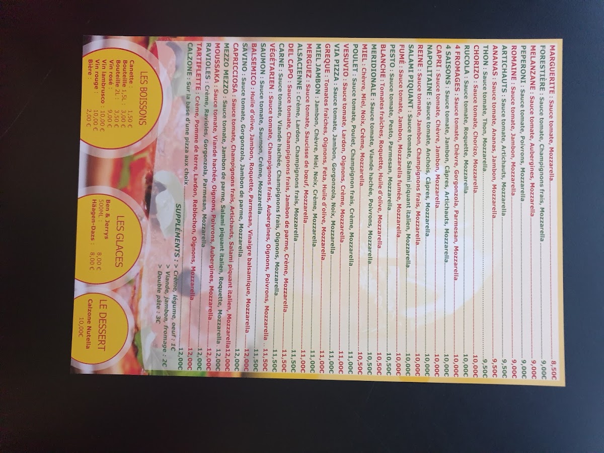 Via Pizza - A Emporter at 127 Grande Rue in La Tronche offers a menu that balances classic Italian flavors with approachable pricing, making it a standout for takeaway enthusiasts. The Pizza Reine impresses with its perfectly balanced combination of ham, mushrooms, and cheese, delivering a rich yet comforting taste. For those who enjoy a spicier kick, the Pizza Salami Piquant provides a satisfying heat from its spiced salami, complemented by a generous layer of melted mozzarella. The menu also features the stuffed Calzone, a hearty option packed with cheese and savory fillings, ideal for a more indulgent experience. Each dish demonstrates careful attention to ingredient quality and preparation, ensuring that even takeaway maintains a fresh, authentic flavor. Overall, Via Pizza - A Emporter’s offerings are straightforward yet flavorful, with standout pizzas and calzones that highlight the restaurant’s commitment to satisfying traditional Italian cravings in a casual, convenient format.